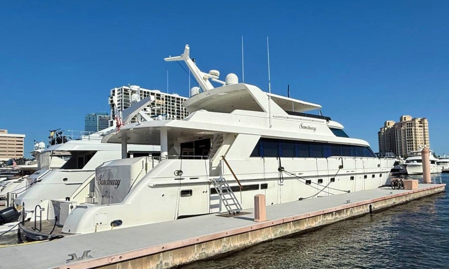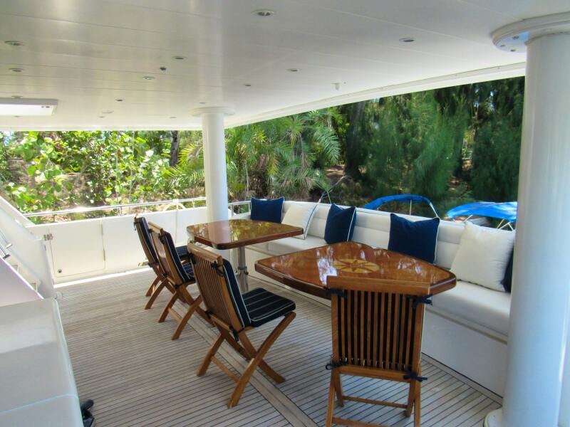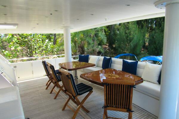 Sanctuary is a raised pilothouse design with walk-around decks, four staterooms and three cabins for crew. Galley / Country Kitchen is forward on the main deck. Aft on the main deck is a generous salon with a dining area forward and lounge / social area aft.