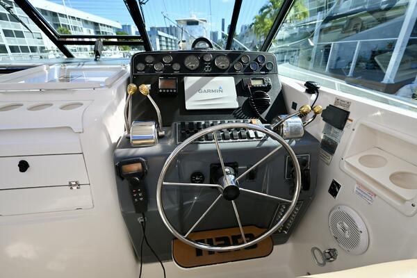 The ergonomic helm offers excellent visibility and easy access to all controls and electronics.