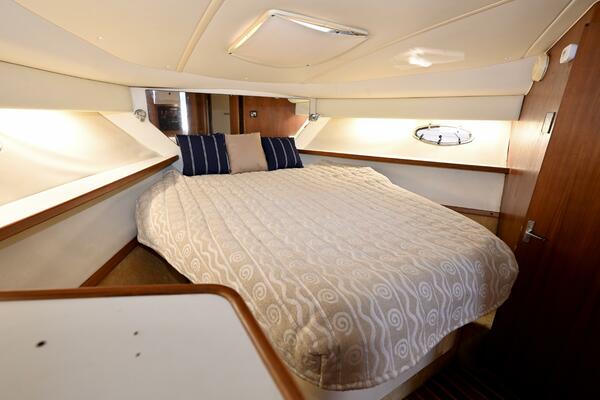 · In the Plan B layout, the forward cabin is configured with a pedestal queen berth (centered) rather than a standard forward V-berth. The result: a more comfortable “owner’s suite” feel.