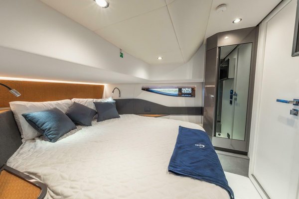 Born out of 100% Italian creativity and design, the Verve 47 combines sport performance with elegance. From Francesco Struglia's drawing board and naval architecture by Michael Peters, the Verve 47's design intent was approached as if it were a blade. It is an expression of contemporary yachting, designed for the modern owner who seeks the combination of style, speed, and entertaining.