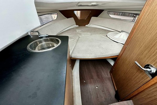 Below youll find a bright cabin with a double berth, enclosed head, and a longitudinal galley - perfect for overnights or a quick escape between sandbars and coves.