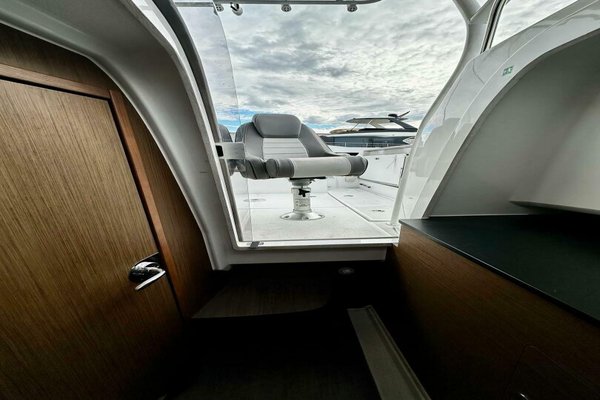 A deep-V Michael Peters hull delivers a dry, confident ride, topside spaces are all about safe walk-around access, the flexible cockpit converts allowing seating for all guests and the foredeck sunpad is perfect for lounging.