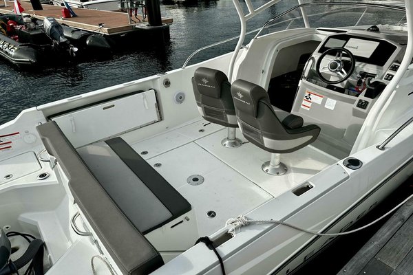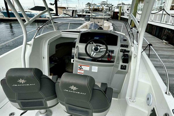 The Jeanneau Leader 7.5 “WA” Walkaround pairs sporty performance with family friendly versatility. At 24’ LOA with an 8’3” beam, shes the sweet spot for single engine efficiency with true “weekender” utility.