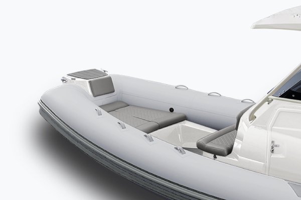 Standard Features Deep V hull Antiskid deck surface Front and rear storage lockers Hull ventilation system Twin self-bailing unit Built-in fuel tank with external deck filler Front step plate Front towing bow ring Rear cleats (bollards) Front cleats (bollards) Rubbing strake Safety handles & carrying handles Two paddles & foot pump Tube repair kit Accessories bag Owner’s manual Steering console Combined pilot seat/bolster Steering system (hydraulic) Steering wheel Navigation arch/Ski mast Navigation lights Automatic bilge pump Battery container Battery isolation switch Fuel gauge Front locker removable cushion Rear cushion with wrap-around softback Hypalon ORCA Fabric Freshwater shower/washdown Bow infill cushions for sun bed Console cover Aft Seat cover Anchor and windlass SeaDek flooring Freshwater Cockpit shower T-top Anchor and electric windlass