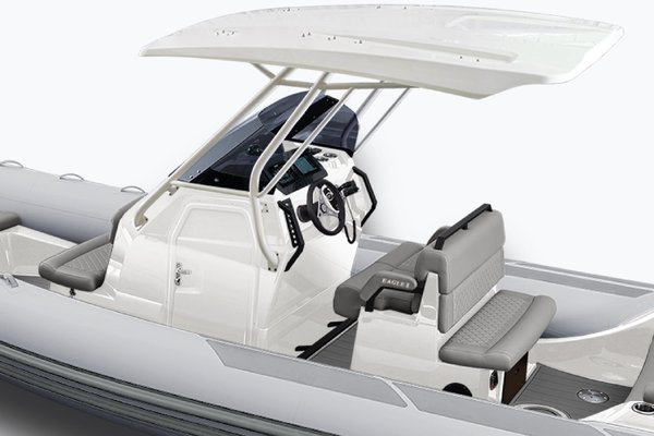 Overview EAGLE 8 Sleek-Looking and Luxurious With a sleek, modern design and 26 feet of ample space for you and your guests, the Eagle 8 rigid inflatable boat by BRIG USA is the premier choice for anyone looking for an unforgettable boating experience. Our high-quality boats are made in Europe by people who are experts in their field. The Eagle 8 is a luxurious family cruiser that shows off everything boaters throughout the world have come to love about our durable, great-looking inflatable boats. The Eagle 8 is constructed with a deep-V-hull, which has become a signature of the Eagle series. This large 26ft RIB boat is made with extra-wide tubes, a square bow, and an extended waterline to ensure you’ll enjoy a smooth, stable ride whenever you’re aboard. While the Eagle 8 isn’t the biggest RIB boat in our handsome lineup, it is big enough for you and your friends and family to enjoy with ease. It has enough comfortable seating for 11, and it can transport up to 16 adult passengers at once. The Eagle 8 has storage lockers in the front and back, and it’s capable of hauling a payload of as much as 4,270 pounds. With such a versatile, roomy boat, you’ll never have to worry about leaving anyone or anything at the dock. One of the many things that makes the Eagle 8 stand out is the boat’s prominent radar arch. This arch is noticeable from a considerable distance, and it gives the sleekly styled Eagle 8 an unmistakable appearance that’s indicative of all the fun you’ll have every time you hit the water in your inflatable cruiser.