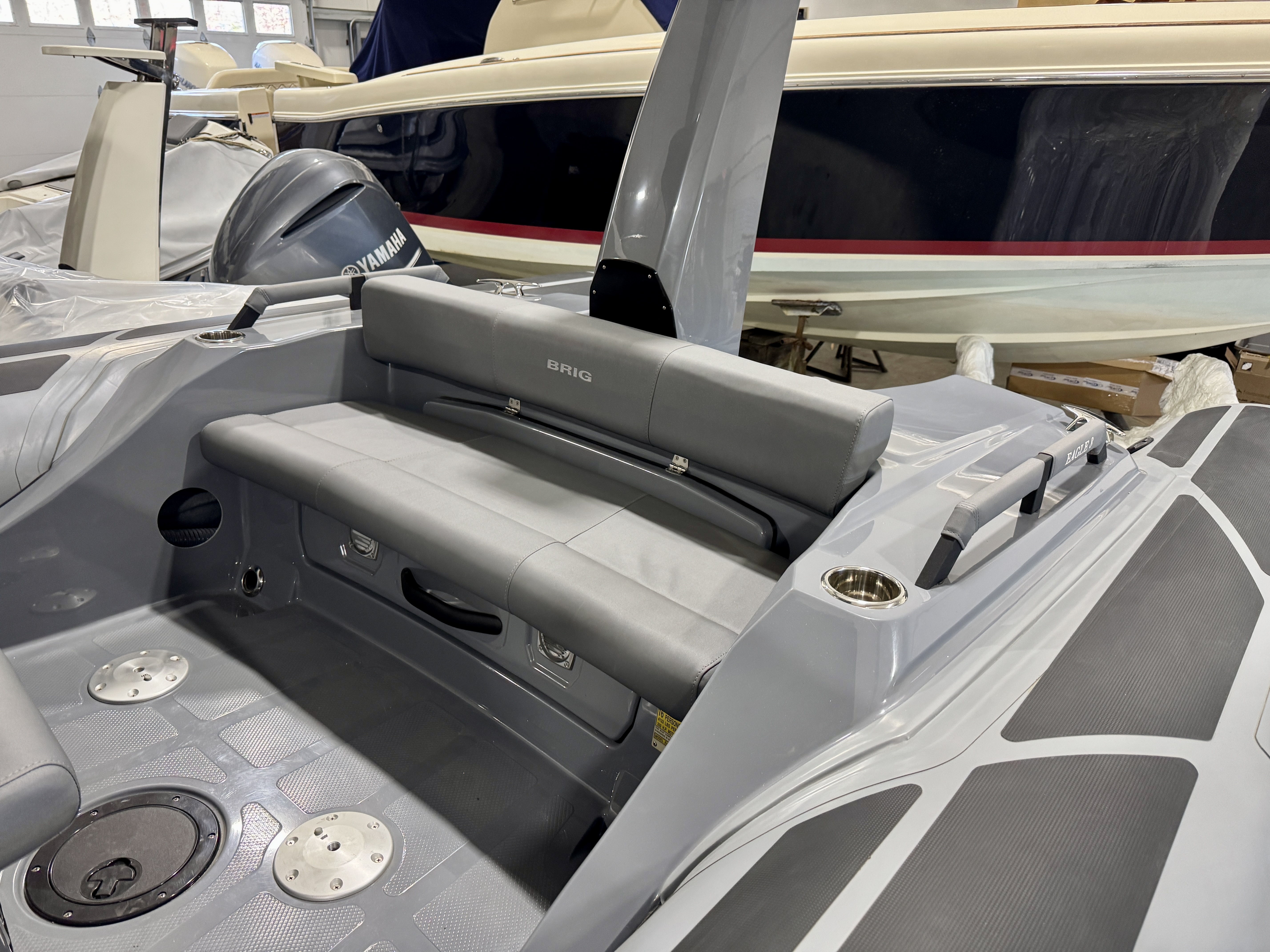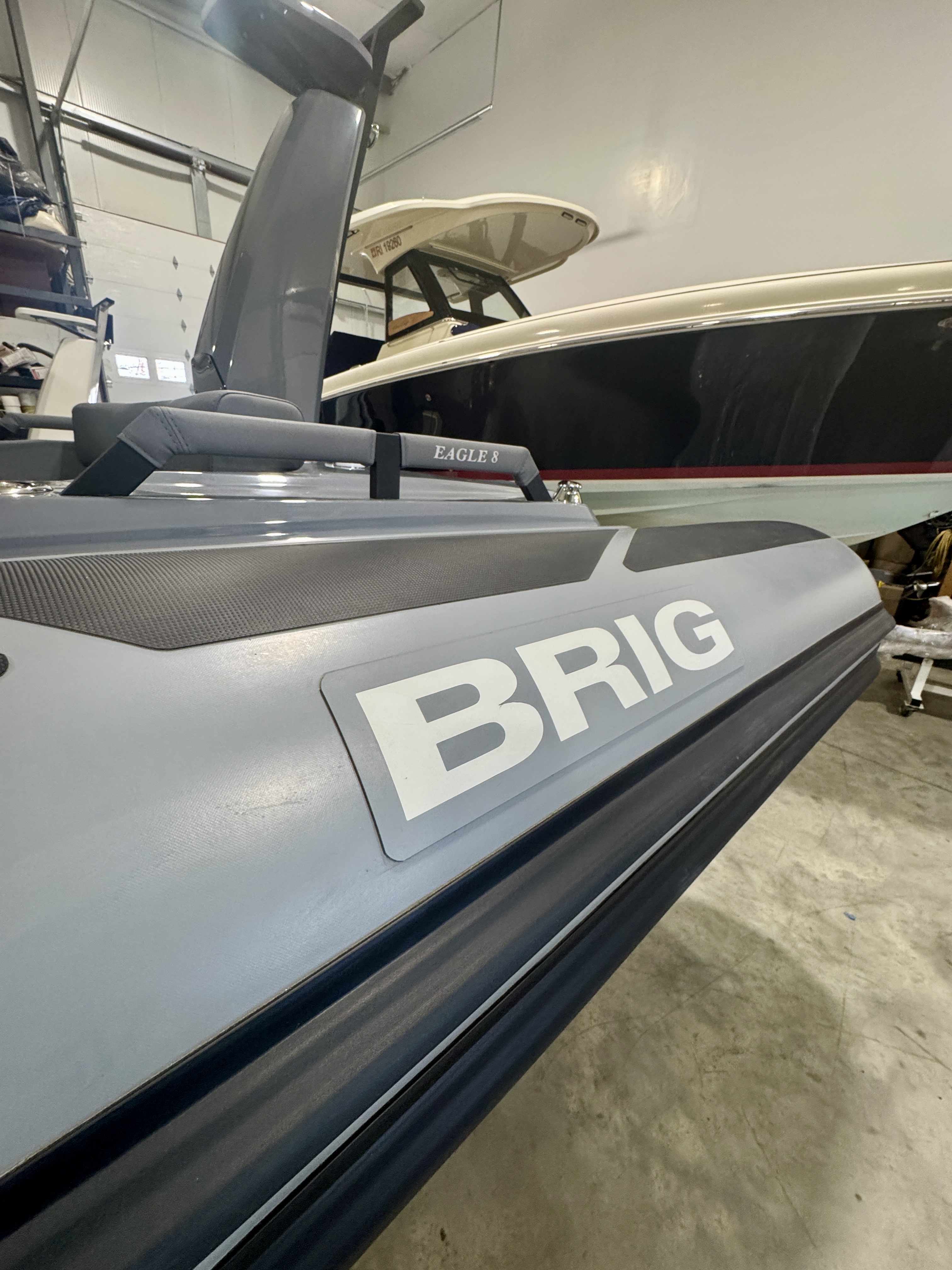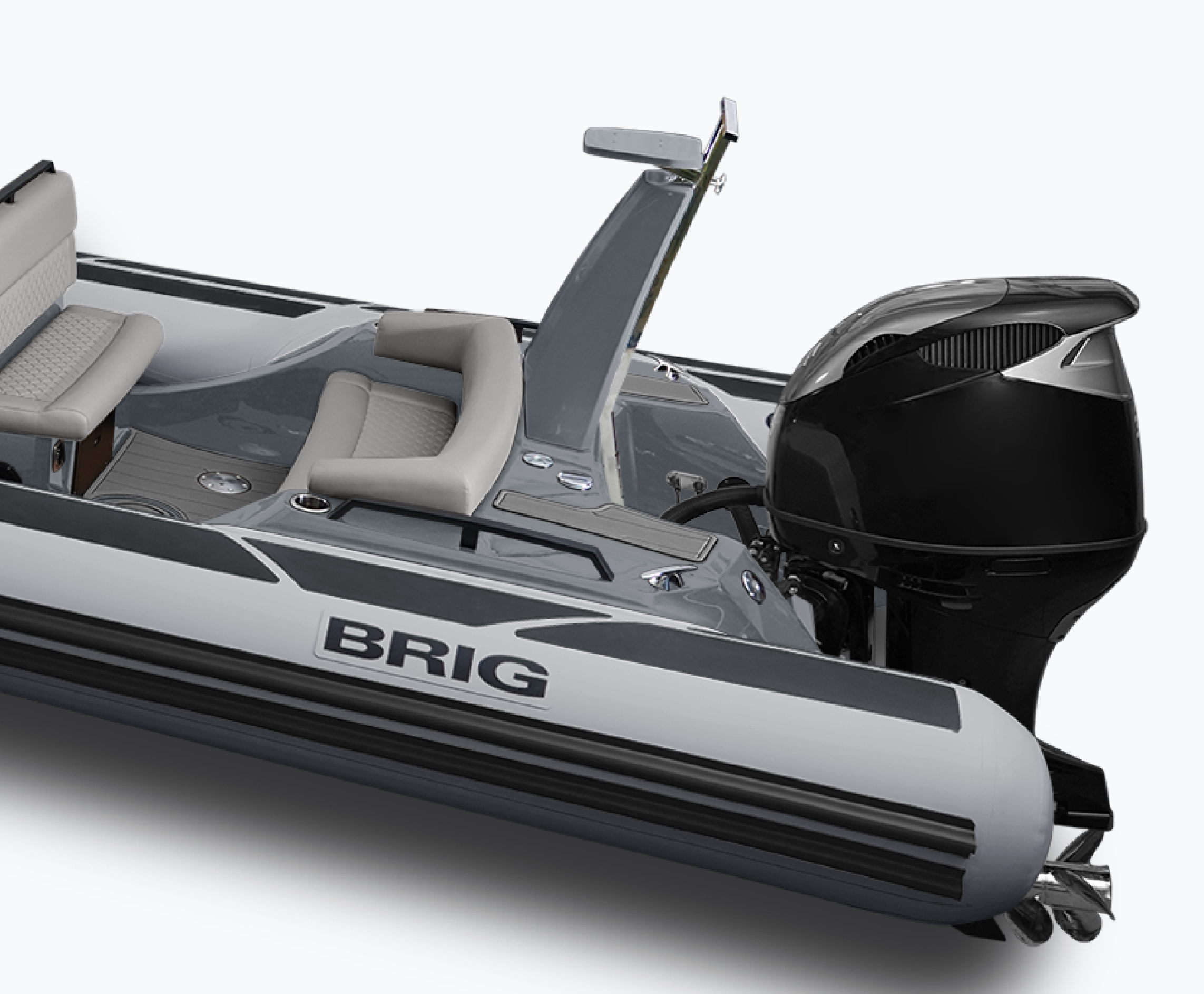 BRIG IS BACK! IN STOCK AVAILABLE NOW We are lucky enough to have been allotted a few Brigs for delivery this season. This boat is in stock: Neptune Gray Tubes Dark Gray Gelcoat Titanium Gray Cushions and Tan SeaDek The engine recommendation is a Suzuki 350. THE BRIG EAGLE 8 COMBINES INCREDIBLE COMFORT, STYLE, AND PERFORMANCE TO MAKE IT THE BEST FAMILY BOAT WE’VE EVER MADE. Featuring an extended bow that converts effortlessly into a generous sundeck, a handy electric head unit, and plenty of seating and storage, the Eagle 8 is designed for long days spent enjoying the open water. A family cruiser with sleek, iconic profiling and a gorgeous design, the Eagle 8 offers maximum safety and stability thanks to its deep V hull, extended waterline length, and extra-wide ORCA Hypalon® tubes. A leader in its class, this 8-meter luxury boat can comfortably carry up to 10 passengers, with larger under-seat lockers, removable dining tables, and front and rear platforms that make getting on and off the boat easy, whether you’re stepping on to dry land or diving into the big blue.